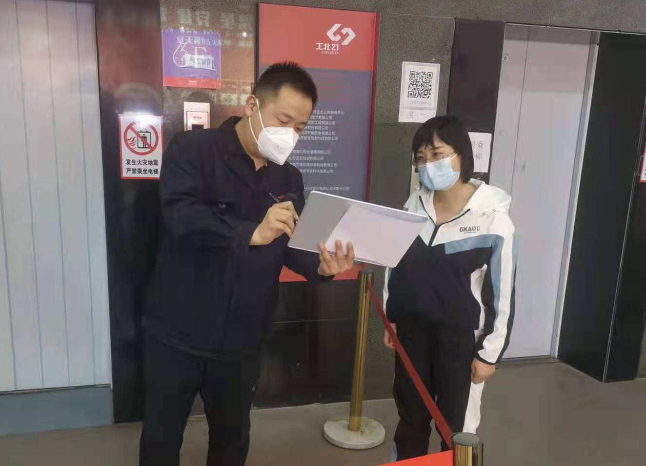 自近期疫情形勢嚴峻以來,創智穀全員都參與到了日常執勤中,職工們按照值班表,將門崗執勤作為每天的第一項工作,王鶯博在此期間擔負起了重要責任,“對外來人員要做好登記,如果沒有佩戴口罩,可以提供給他們,嚴格禁止不戴口罩的人員入園”王鶯博耐心地對值班人員說道。