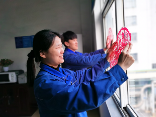 在方大特鋼招待所,工作人員開心地將一個個紅燈籠、“福”字吊墜懸掛在大廳及走道周圍,一派喜慶與紅火,大家品著茶、彈著琴,訴說著新年的願望,一起迎接新年的到來;在焦化廠煉焦車間幹熄焦作業區乙班,班組成員們用“福”字窗花、彩帶裝飾班組,讓小“家”溫馨而喜慶,呈現嶄新的麵貌。