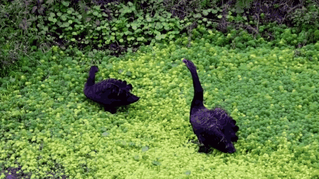 黑天鵝一對對,白鷺一群群