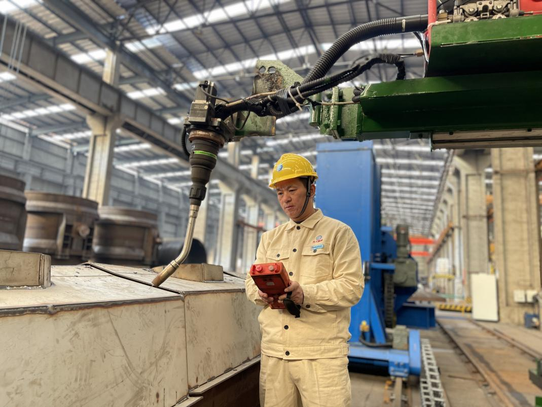 沒mei有you創chuang新xin,就jiu沒mei有you發fa展zhan。在zai基ji層ceng幹gan電dian焊han工gong非fei常chang辛xin苦ku,經jing常chang要yao在zai高gao溫wen環huan境jing中zhong作zuo業ye,一yi蹲dun就jiu是shi大da半ban天tian。甘gan榮rong剛gang想xiang,如ru何he才cai能neng讓rang大da家jia幹gan得de不bu那na麼me累lei呢ne?工gong業ye化hua和he自zi動dong化hua的de融rong合he,讓rang他ta找zhao到dao了le方fang向xiang。2015年,甘榮剛與工作室成員、工程師們一起動手製造出了一台簡易的“懸臂式焊接機器人”,實現了堆焊的自動化,既減輕了員工的勞動強度,也讓他們獲得了1項實用新型專利。看到大家不用再那麼辛苦的堆焊,更加堅定了他用技術改善工藝、降低勞動強度、提升生產效率的信念。