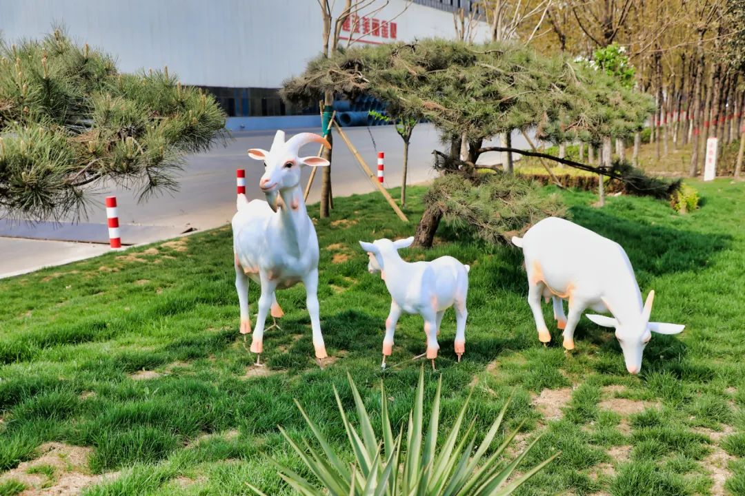 屹立在草坪上的梅花鹿和斑馬雕像