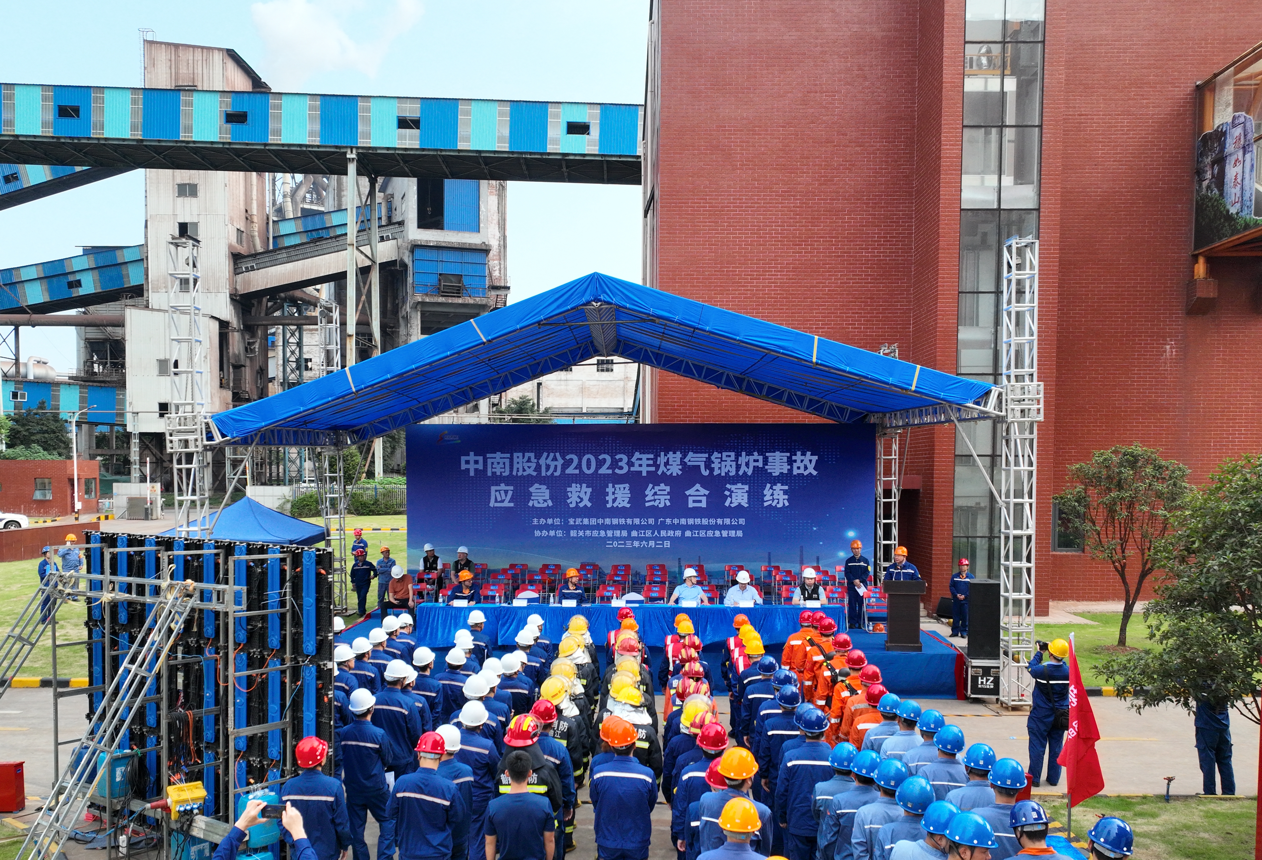 6月2日上午,為強化應急管理,提高崗位員工的應急意識和防範事故技能,煤氣鍋爐事故應急預案實戰演練在中南股份能環部新一電站舉行。韶關市應急管理局、曲江區政府、曲江區應急管理局領導,中南鋼鐵、中南股份有關領導,中南鋼鐵崗位安全履職能力提升管理研修班學員,中南股份各廠部負責人等列席觀摩。整個演練按《2023年公司煤氣鍋爐事故應急演練方案》進行,參加演練人員積極投入,整個演練現場緊張而又有序。