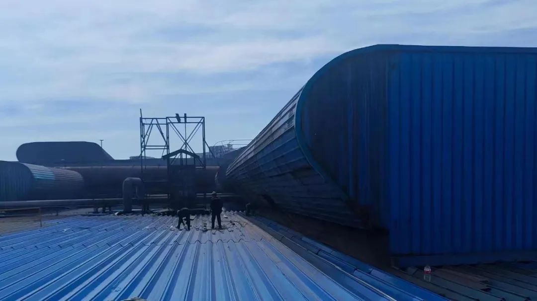 煉鋼廠新區於2009年建成,曆經近15年的風吹雨打及受熱潑渣、連鑄蒸排高溫煙氣侵蝕等影響,廠房瓦破損麵積逐漸擴大,下雨天易造成漏雨、積水等問題,不僅對現場作業環境、員工通行造成一定影響,熔融金屬區域積水則直接涉及重大安全事故隱患。