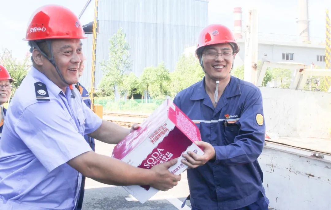 該公司黨委副書記、紀委書記曾撼宇,副總裁徐東明來到質檢中心化驗室、設備部儀表、計量作業區和安保中心五號門崗,將綠豆、白糖、鹽汽水、西瓜等防暑降溫慰問品送到職工手中。在仔細了解職工工作和生活情況後,曾撼宇對大家恪盡職守、無私奉獻的精神給予充分肯定,並叮囑大家要注意自我調節,防止高溫中暑,保持自身健康,以良好的精神狀態投入到工作中去。