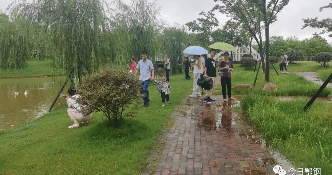 當來到美麗的花溪濕地,大家按捺不住激動的心情,迫不及待地拿出手機合影留念。“荷風送香氣,竹露滴清響。”淡淡的清香沁人心脾,野鴨悠閑戲水,清澈的湖水,倒映著綠樹成蔭。家屬們欣賞著這人與自然的和諧畫麵,久久駐足,不願離開。