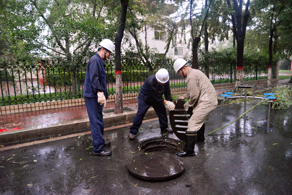 煉鋼廠運行車間緊緊圍繞該公司廠部防雨防汛要求,積極應對落實防雨防汛責任,重點對該廠部西側廠房天溝雨水快排係統進行檢查、看護、抽水,二次除塵地溝口組織應急抽排保障安全生產。