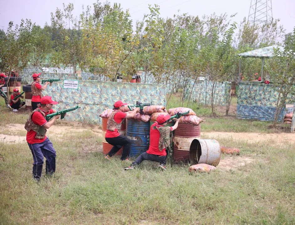 秋高氣爽、晴空高照,活動大巴緩緩駛入極具特色的山焦知青文化園,集體留影後進行分組開展真人CS大戰、捕魚大作戰、障礙跑比賽、農具競技賽等四項團隊拓展競賽活動。