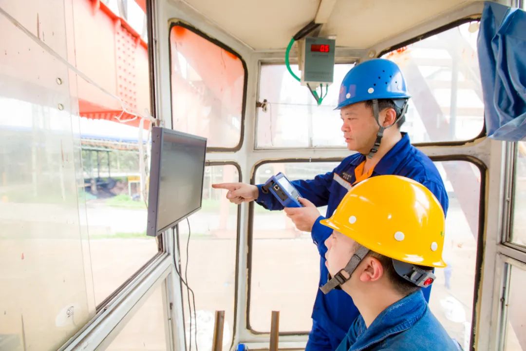 為保證在規定時間內完成翻車機的檢修任務,我們成立了1、2號翻車機定修攻關黨小組,1號翻車機的撥車機纜線滑軌重達100斤,在2.5米高空進行滑車更換作業,檢維修技術難度很大。為解決技術不足難題,我和我的班組提前製定了詳細的滑車更換方案,搭腳手架、對滑軌進行對位、把纜線放在托架上......經過長達6小時的同心協作,我們成功將三台滑車安裝到位。