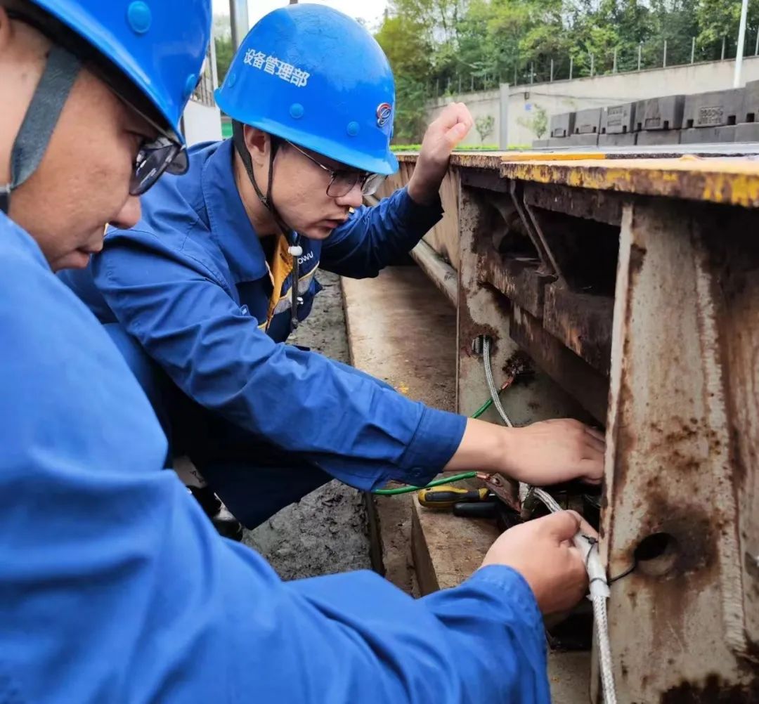 在第三計量站汽車衡秤台旁,他們蹲下來重點查看稱重傳感器的電纜頭是否有磨損,插頭處是否密封嚴實、接地是否牢靠,往往這些不起眼的小地方出現問題,就會影響設備的可靠運行。