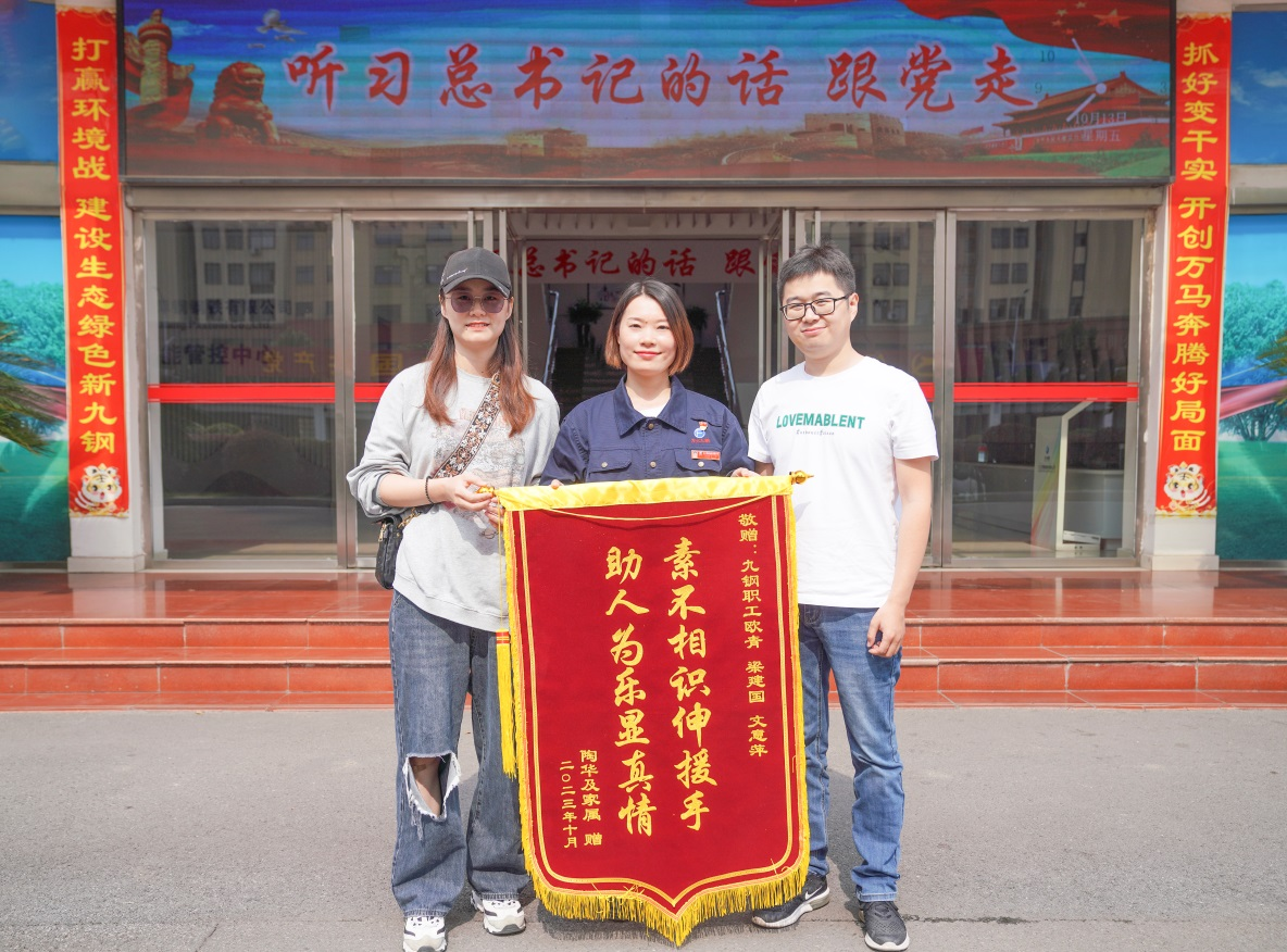 “非常感謝,謝謝你們救了我父親的性命!你們不僅是救了我父親一命,更挽救了我們這個家庭。”10月13日,方大九鋼辦公大樓前,從九江趕過來的陶昭陽兄妹將一麵“素不相識伸援手 助人為樂顯真情”的錦旗送到方大九鋼員工歐青手中,感謝該公司員工歐青、梁建國、文意萍的救人善舉。
