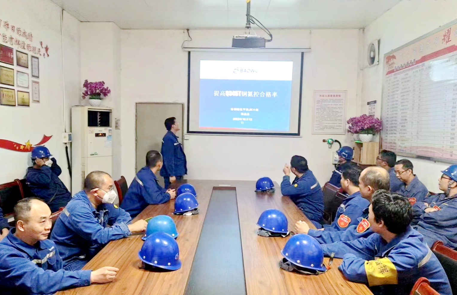 為降低成本,提高鋼水質量,寶武集團中南股份煉鋼廠一煉鋼作業區精煉甲班開展了自主管理課題《提高Q345T鋼氮控合格率》,通過攻關,該鋼種的氮控合格率提高19.23%,創造效益34.6萬元。