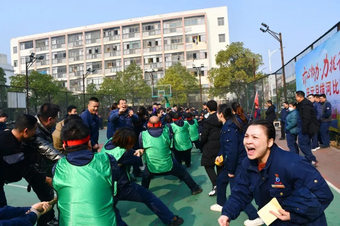 精彩的舞龍表演拉開比賽序幕。現場擂鼓聲聲衝雲霄,彩旗飄飄迎風展,雙龍戲珠迎新年,幹部員工鬥誌昂,笑聲、掌聲、huanhushengbuduan,haoyipairenaodejingxiang。cicibahebisaifenweiyusaihejuesai。yusaiweidanxunhuansai,bisaifenliangzujinxing,caiquyijuqushengzhi,qianliangmingduiwujinrujuesai;決賽采取三局兩勝製,進入決賽的四支隊伍分成兩組進行比賽,獲勝隊伍爭奪第一、二名。