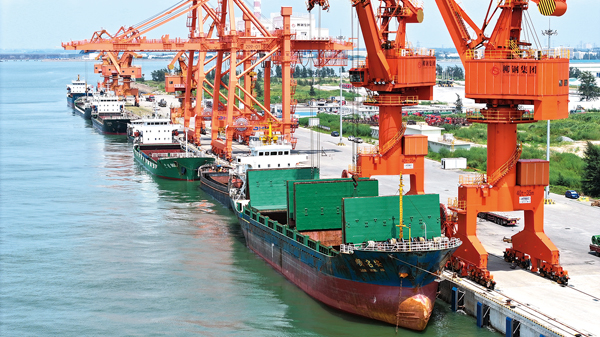 圖為柳鋼集團內河碼頭的裝貨現場。