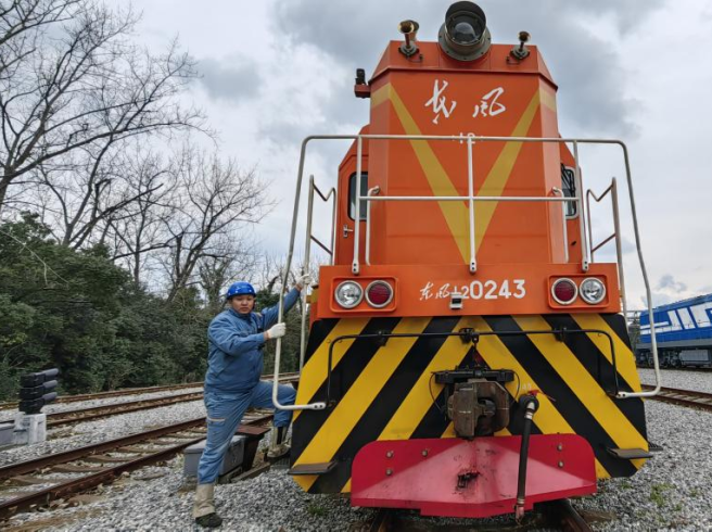 橙、藍色火車在寶鋼股份寶山基地鐵道林立。這是一輛輛開往春天的火車,肩負著原料進廠、物資運輸、保障生產、成品外發的重任,串起鋼廠的有序運轉。這一切都離不開鐵路運輸的“指揮手”調車員的精準作業,中冶寶鋼協力分公司機械維修中心傾翻作業區的吳祥鬆便是調車員中的一員。“這次春節我選擇堅守。”在班組會討論節日期間值班計劃時,吳祥鬆舉起手選擇在崗值守。“我是入職多年的老員工了,春節缺人手,我想留下來。”吳祥鬆說。這個春節,他和班組成員一起,與鋼軌為伴、與火車同行,手持對講機,堅強守護成品庫、鐵合金庫及焦炭卸車點,每天頻繁的穿梭在鐵路線路上,每天調動火車150餘輛,緊密組織鋼廠鐵路運輸的安全輸送網。