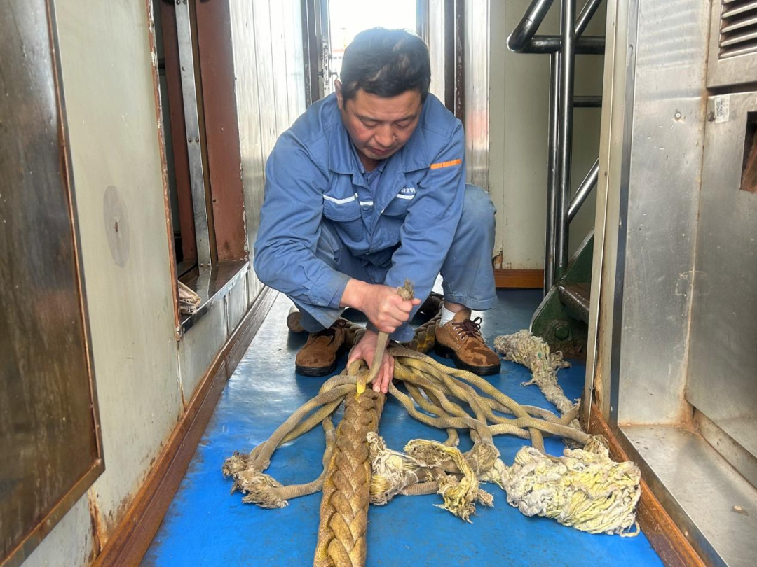 2月10日清晨,中冶寶鋼第三分公司馬跡山項目部拖輪水手高光成踏上了龍年第一天的上班之路。拖輪水手主要負責船舶帶纜、解纜、頂推作業以及裝、卸船期間的船舶保駕工作。一上班,高光成所在的新世紀三號拖輪就要執行國輪靠泊作業任務。船舶的解、帶纜並不容易,但是像高光成這樣經驗豐富的水手會根據船舶長度、噸位和潮水的漲潮、退潮時間明確不同船舶的帶纜方式和位置。高光成和他的同事們在碼頭前沿完成拖輪與國輪的係纜,將其頂推至指定泊位,完成靠泊作業後解纜。隨後新世紀三號拖輪在周邊巡航,隨時準備對外輪進行補充穩泊保駕。甲辰龍年的大年初一,在拖輪水手們忙碌的一天中度過。