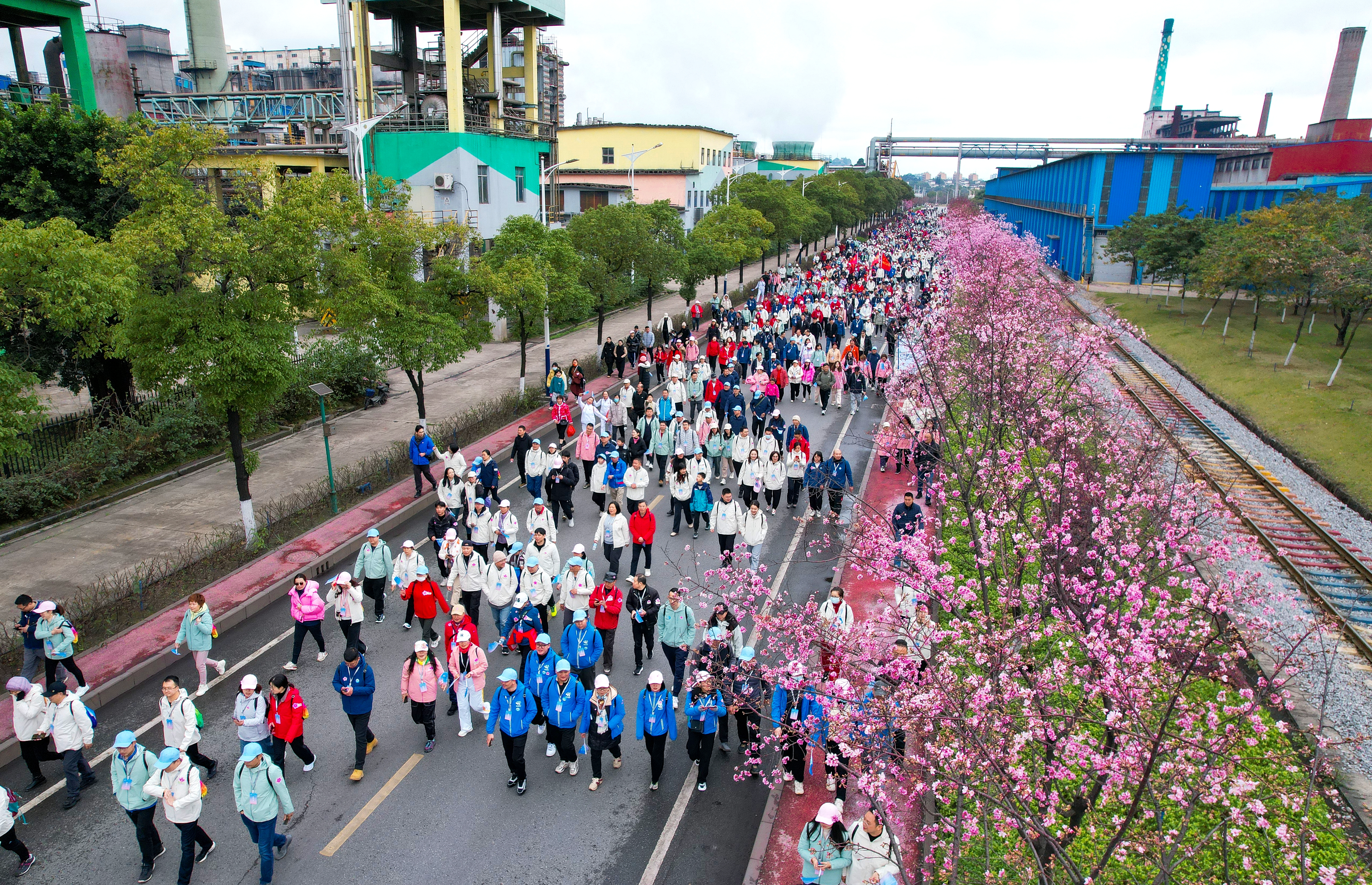 “鋼城櫻花開得好美!漫步廠區如在畫裏。”“作為合作夥伴,我們在徒步中加強交流、深化友誼與合作。”“我是在韶鋼長大的,看到企業發展成花園工廠,心裏感到特驕傲和自豪。”在這春意盎然、萬物萌發的美好時節,寶武集團中南股份(原韶鋼)廠區內的1700多株櫻花競相綻放,五彩繽紛、美輪美奐。為積極踐行寶武“誠信、創新、綠色、共享”的價值觀,與員工、家屬、生態圈夥伴分享企業轉型升級、綠色發展的成果,日前,中南股份舉辦了“春風裏-第二屆多彩韶鋼漫步文化活動”。