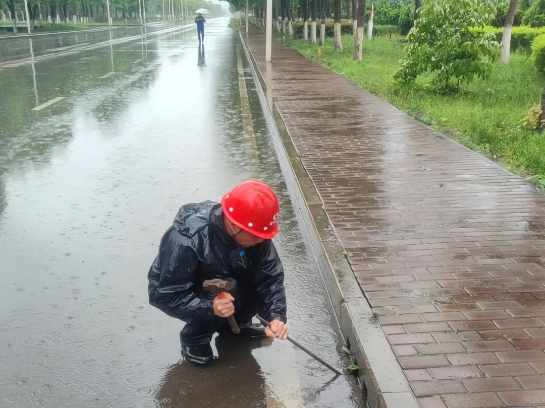 對廠區道路及重點積水區域進行疏通排水