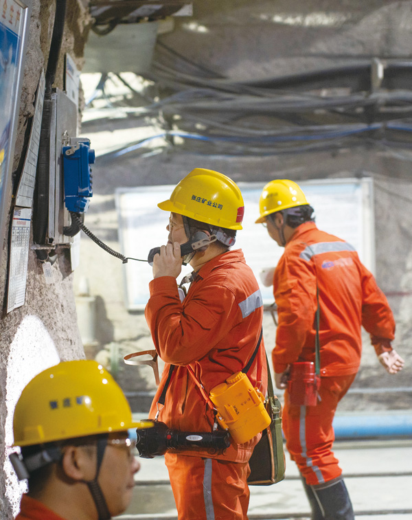 圖為馬鋼礦業張莊礦工人正在井下負480米處進行通信聯係。