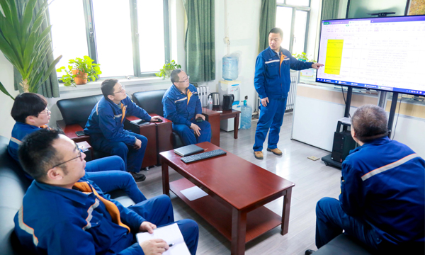 圖為八鋼軋鋼廠新產品研發技術團隊正在研討軋製工藝方案。
