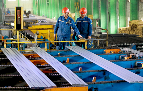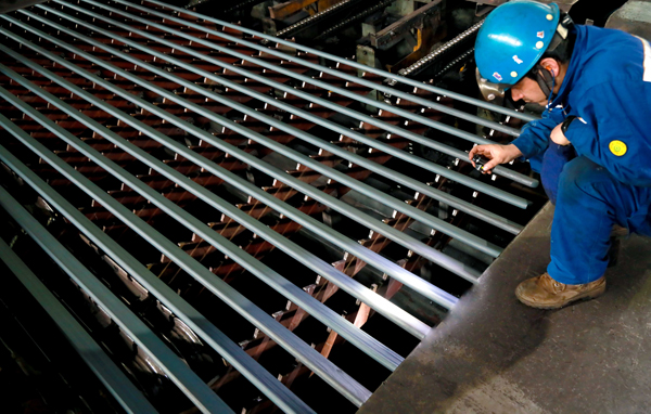 圖為八鋼軋鋼廠新產品研發技術團隊成員正在查看新產品外觀質量。