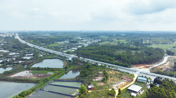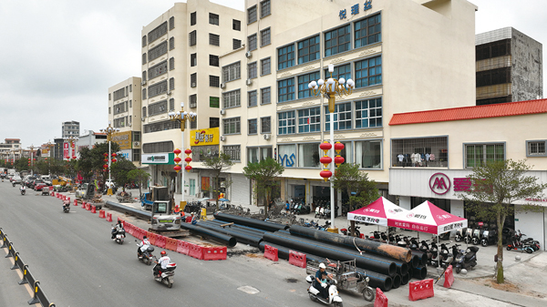 圖為坡頭鎮供水管網項目海東快線明敷段施工現場。