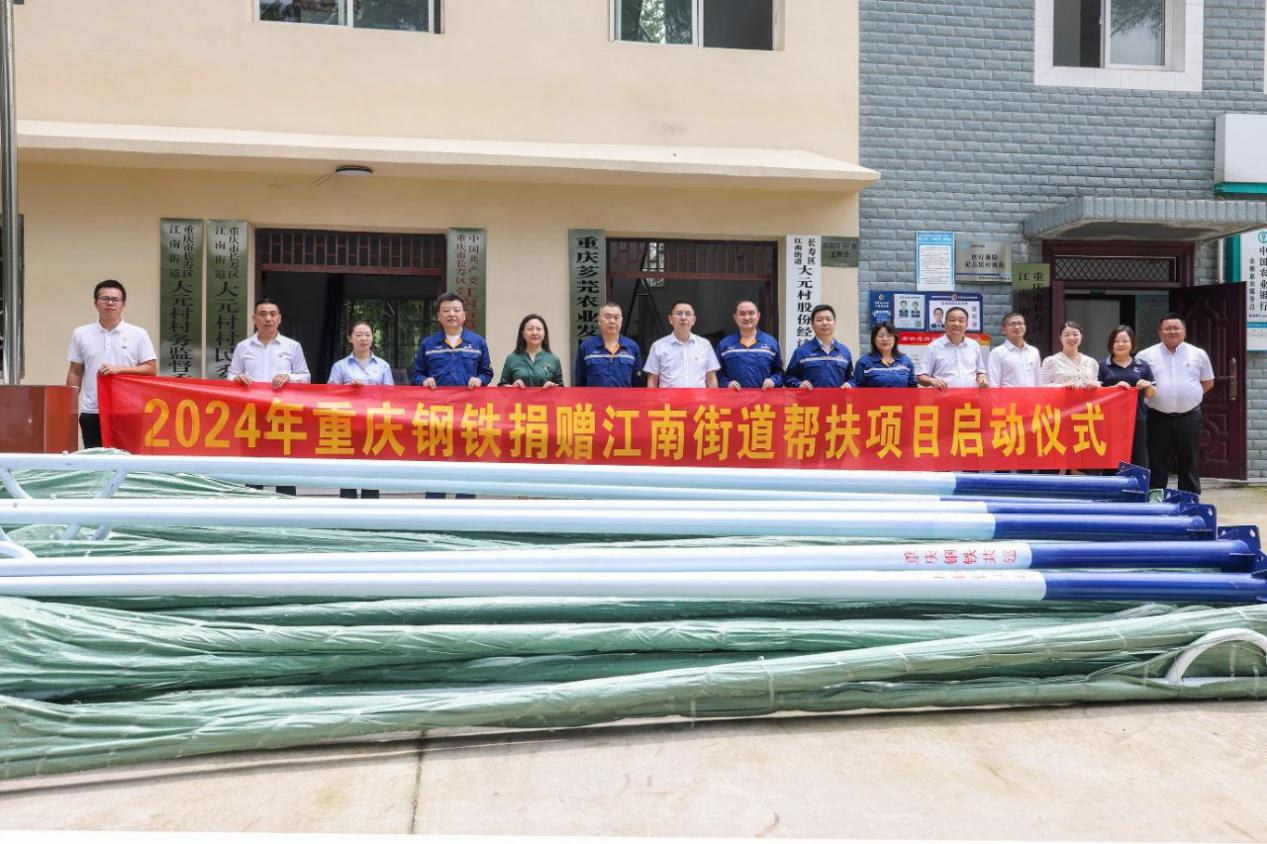 6月25日上午,重慶鋼鐵對口幫扶江南街道項目捐贈儀式在重慶市長壽區江南街道大元村舉行。該公司黨委副書記、紀委書記、工會主席姚小虎,江南街道黨工委書記傅家成、江南街道辦事處主任陽蘭出席儀式。