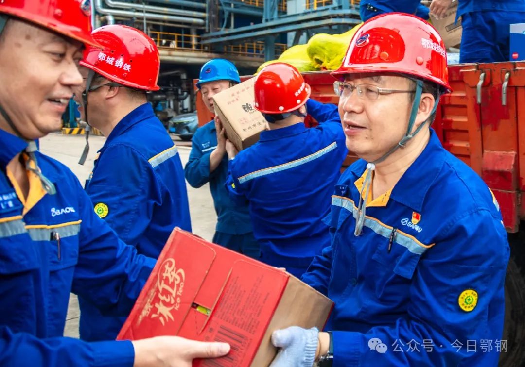 總裁、黨委副書記陸隆文,副總裁徐東明一行先後來到煉鐵廠焦化工序東區循環水站、1#高爐爐台、燒結機主控樓,為現場職工送上慰問物資,送去公司對一線職工的關愛。