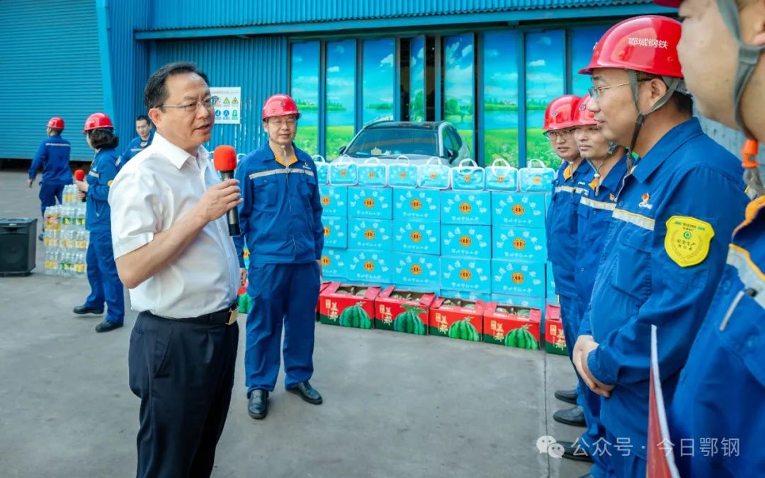 夏日炎炎,熱浪翻滾。7月25日,鄂州市委書記孫兵一行來到鄂鋼寬厚板廠生產現場,看望慰問奮戰在高溫酷暑下的一線職工,為他們送去清涼和關愛。公司領導陸隆文陪同慰問。