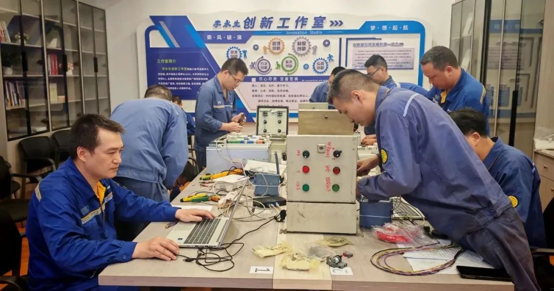 近日,鄂城鋼鐵公司寬厚板廠“李永生創新工作室”,十幾名職工正忙碌地進行編程、調試及設備功能測試。2小時後,一聲洪亮的聲音響起,“時間到,各選手退場,小組長留下進行功能演示,然後現場評分。”