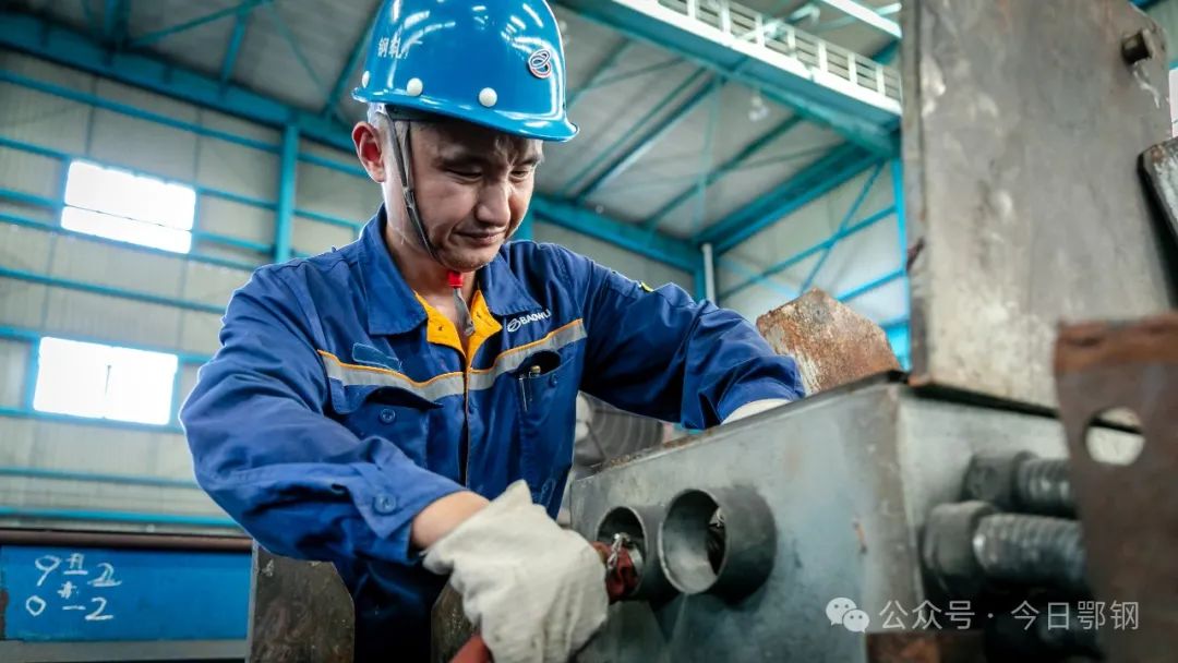 鋼軋廠自動化車間職工李峰在檢修結晶器。(桂多 攝)