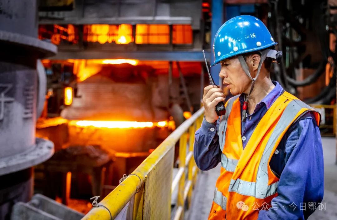 鋼軋廠煉鋼車間職工廖林在觀察精煉爐冶煉情況。(桂多 攝)