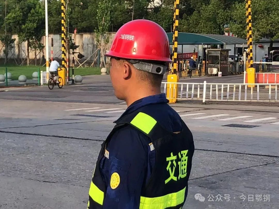 黝黑的臉龐,濕透的衣衫,物流管理部交通管理人員“頂烈日,冒酷暑”,奮戰在執勤一線,引導車輛規範行駛,為廠區交通安全提供有力保障。(吳小琴 攝)