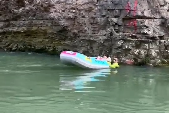 最近重慶持續高溫,“炙烤”模式下,不少人選擇戶外親水活動。8月21日下午,肖霄帶家人去近郊一河邊漂流。
