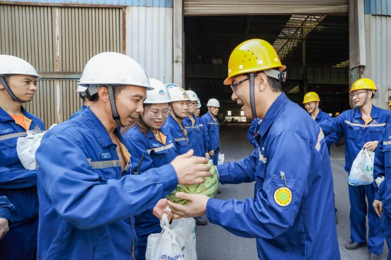高級副總裁趙仕清前往煉鋼一係列鋼坯發運點、製造管理部原料檢測作業區進行慰問,將防暑降溫物資送到員工手中,叮囑大家要注意安全,繼續弘揚勞模精神、勞動精神、工匠精神,發揚重慶鋼鐵人的優秀品質,全力以赴完成下半年生產經營目標。
