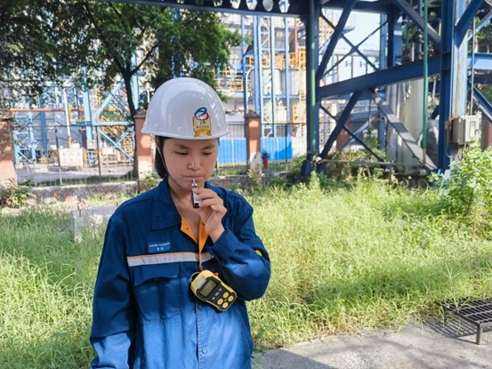 出發前喝一瓶藿香正氣水,隨身攜帶冰礦泉水,手握“祖母綠”風油精是化學檢測作業區焦爐煤氣取樣崗位上防暑降溫必備的“三大”法寶。(楊呂)
