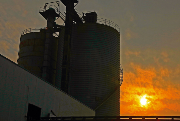 圖為夕陽下的高性能活性摻合料生產裝置。
