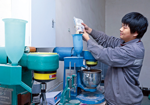 圖為該公司質量檢測人員進行產品膠砂試驗。