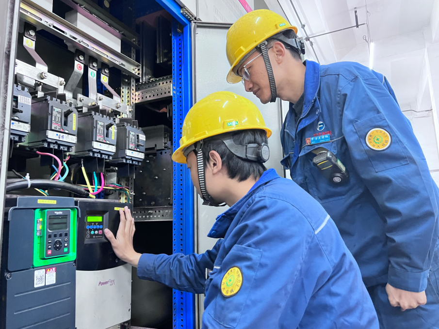 方大特鋼技術人員正在對245燒結配料熱水泵變頻器進行點檢 徐家洪 攝
