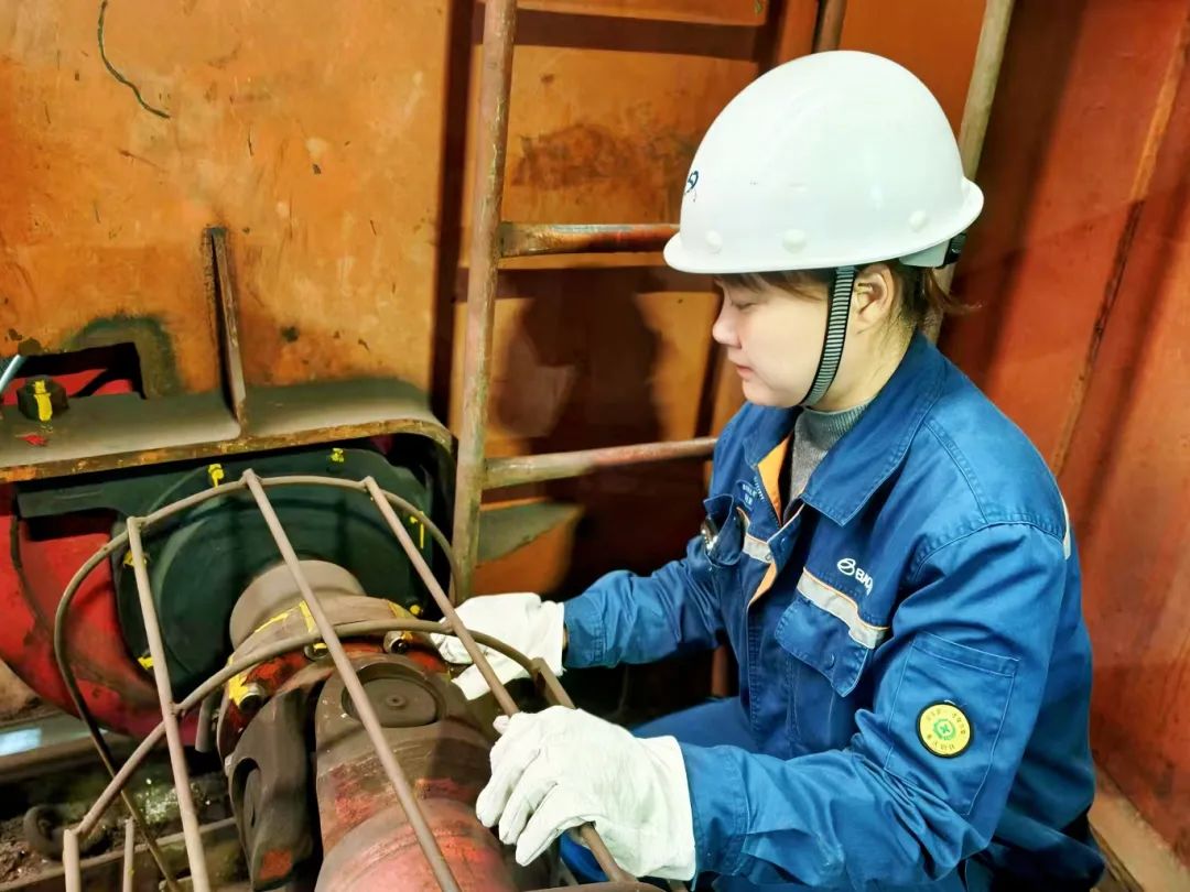 一次在上崗前巡檢時,她察覺行車電機運轉聲音有異常,她立即蹲下並側耳細聽,即便是在嘈雜的現場,微弱的異響也無法逃過她的“法耳”,她迅速取出對講機聯係維修人員前來排查處理,及時消除了一個設備安全隱患。