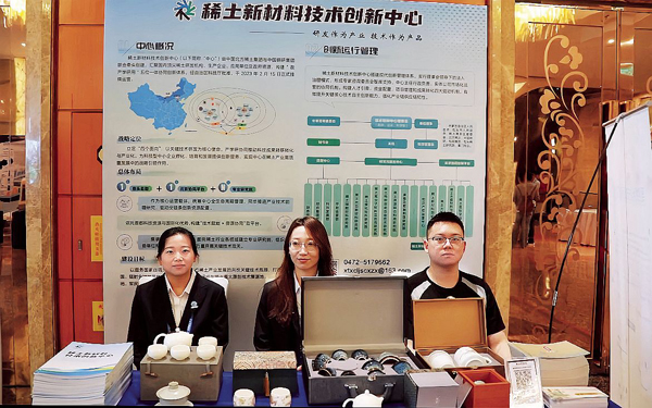 圖為包鋼稀土院天津分院在中國稀土學會第六屆青年學術會上展出的“稀饒”茶具。 (本報記者 朱亞明 攝)