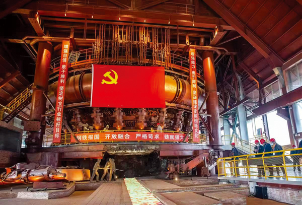 在武鋼以全國勞動模範李鳳恩命名的“鳳恩廣場”的鋼鐵門廊上,“荏苒如駛 初心如磐”幾個大字亮眼奪目,表達著武鋼人的堅守與奮鬥。