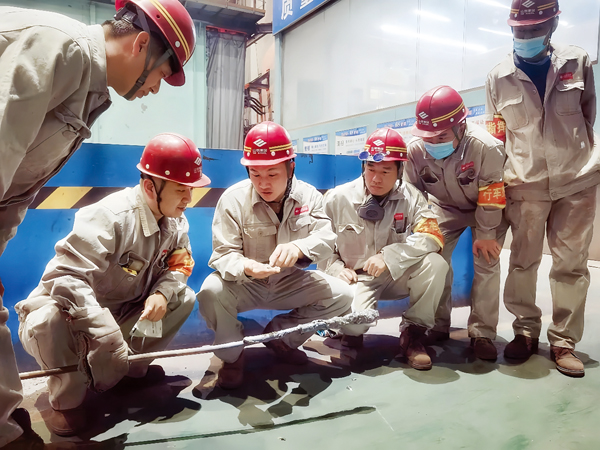 圖為山鋼股份特鋼廠煉鋼車間精煉班組成員正在研討新的鋼包底吹模式,延長鋼包渣線壽命,降低冶煉電耗。