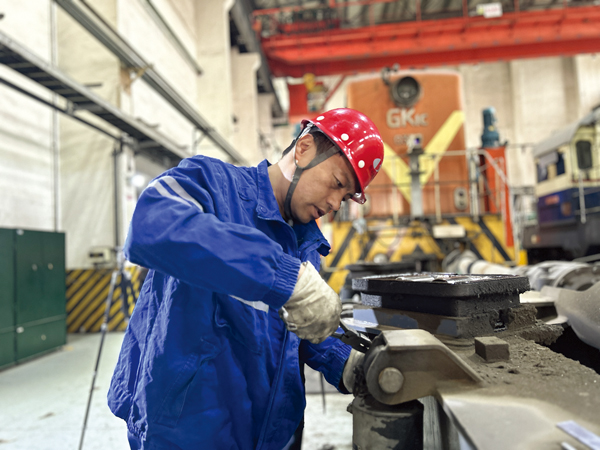 這個18人組成的班組手中握著7項國家專利。他們的任務就是讓機車“關節”更靈活、“腿腳”更利索。檢修過程中,傳動班的職工需要將大量零部件拆解,經過檢查、清洗、維護,再一一安裝回位。一個檢修周期短則十幾天,長則一個月,是技術活兒、耐心活兒。