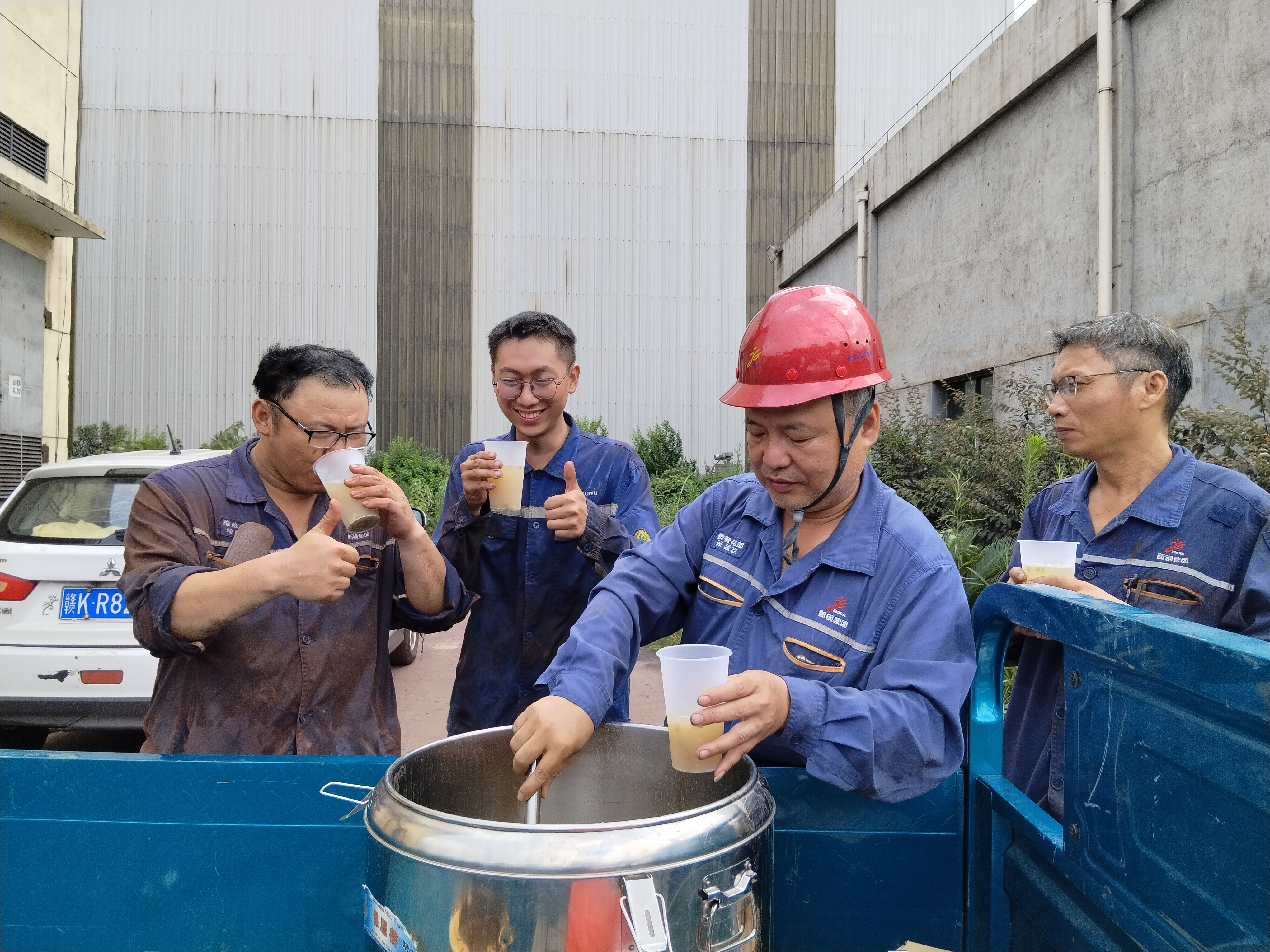 夏日炎炎,酷暑難當。7月29日,新鋼集團數智化部後勤工作人員來到一線班組送清涼,為堅守崗位、戰高溫、保運行的職工送上清涼甘甜的綠豆湯。