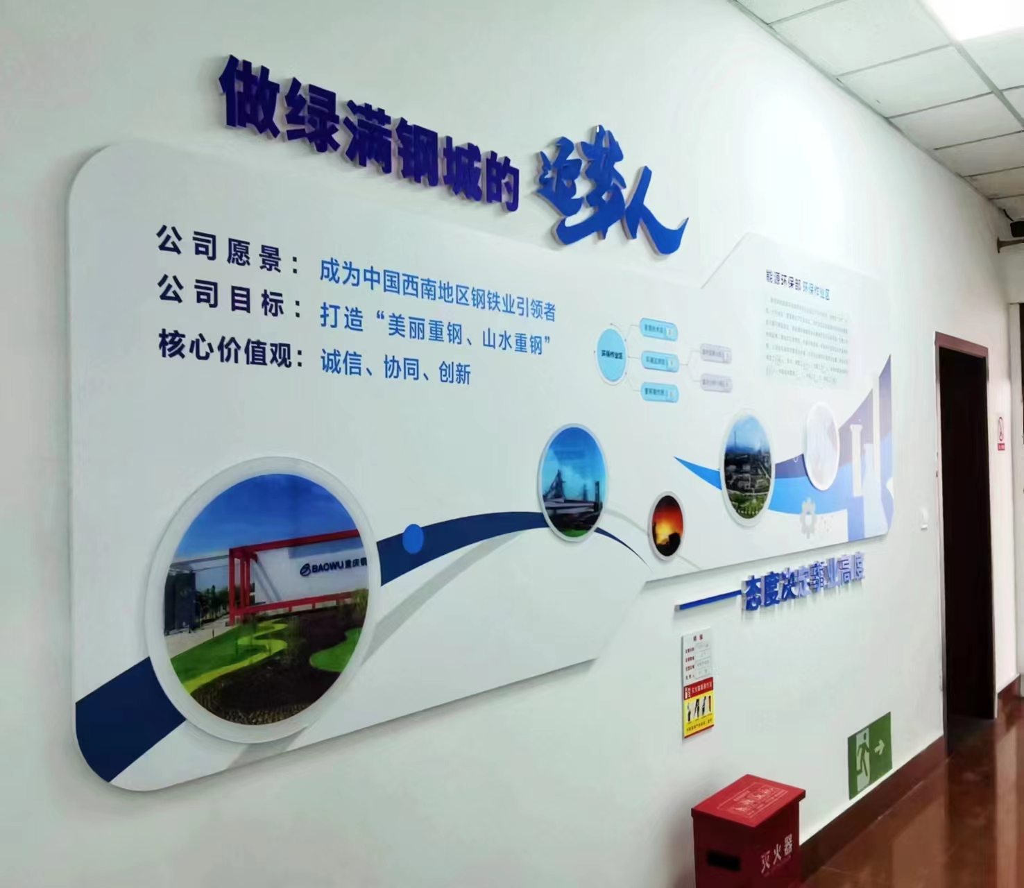 走廊盡頭,一幅由環境監測工金晶親手繪製的燈箱畫靜靜佇立。畫中是江水映照廠區的晨光,是綠意環繞的廠容新貌,暖光從畫中漫出,點亮了每一位員工的通行之路。