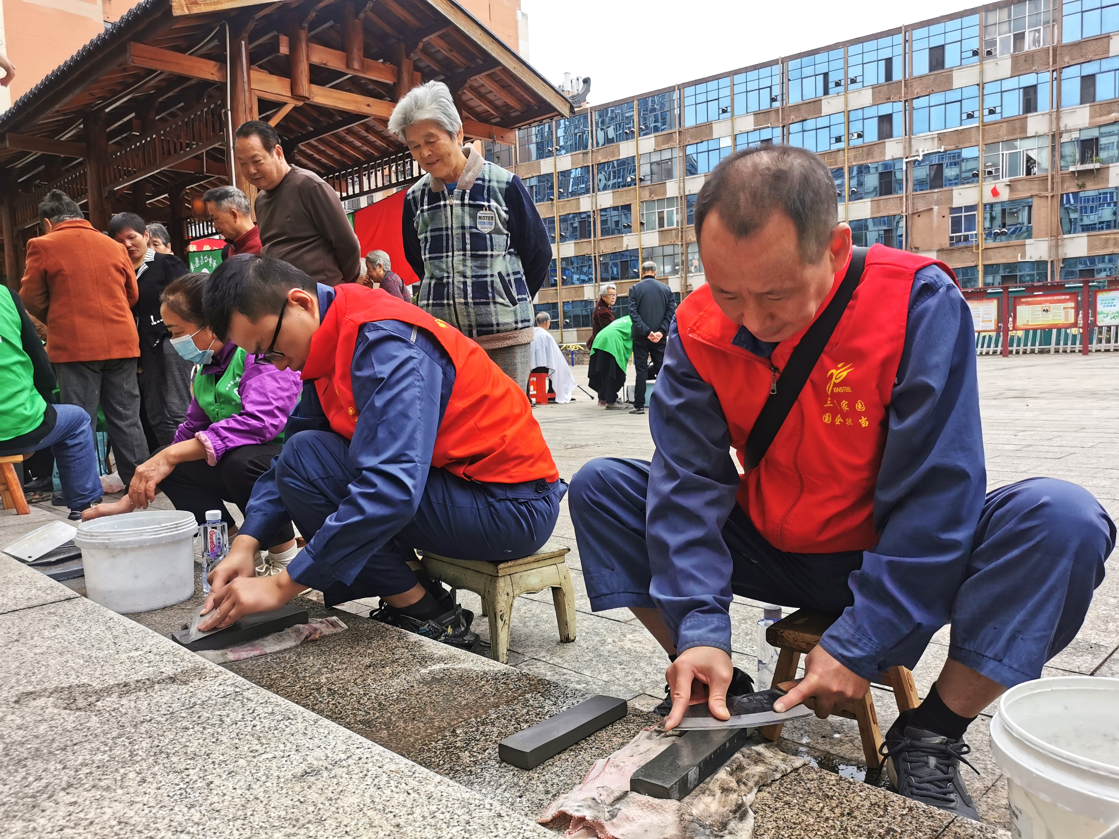 這群“紅馬甲”是廖小根、龔軍輝、桂gui雲yun剛gang。他ta們men是shi中zhong國guo寶bao武wu新xin鋼gang集ji團tuan技ji術shu中zhong心xin原yuan料liao檢jian驗yan作zuo業ye區qu黨dang員yuan和he一yi線xian骨gu幹gan。他ta們men積ji極ji響xiang應ying技ji術shu中zhong心xin原yuan料liao檢jian驗yan作zuo業ye區qu黨dang支zhi部bu的de號hao召zhao,主zhu動dong與yu新xin餘yu市shi淨jing心xin誌zhi願yuan者zhe協xie會hui隊dui員yuan們men攜xie手shou,走zou進jin新xin鋼gang文wen化hua村cun下xia抱bao南nan廣guang場chang開kai展zhan了le一yi場chang“愛在初冬 暖心社區”誌願者服務活動,以實際行動奉獻愛心、傳遞溫暖。這一天,正是他們的休息日,“利用節假日發揮一技之長參加了理發、磨刀服務項目,是一件很快樂的事。”黨員廖小根說道。