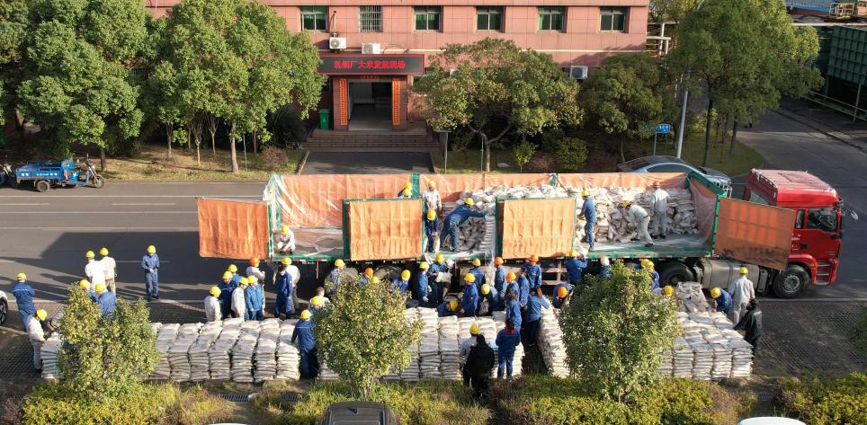 在大米發放現場,一派熱鬧景象,“共同奮鬥創造美好生活”“大米發放現場”的橫幅格外醒目,員工們分工協作,卸車、碼放、分發有條不紊。大家或扛或搬,將蟹田大米穩穩運送到車上,喜悅與幸福在初冬的廠區裏蔓延。