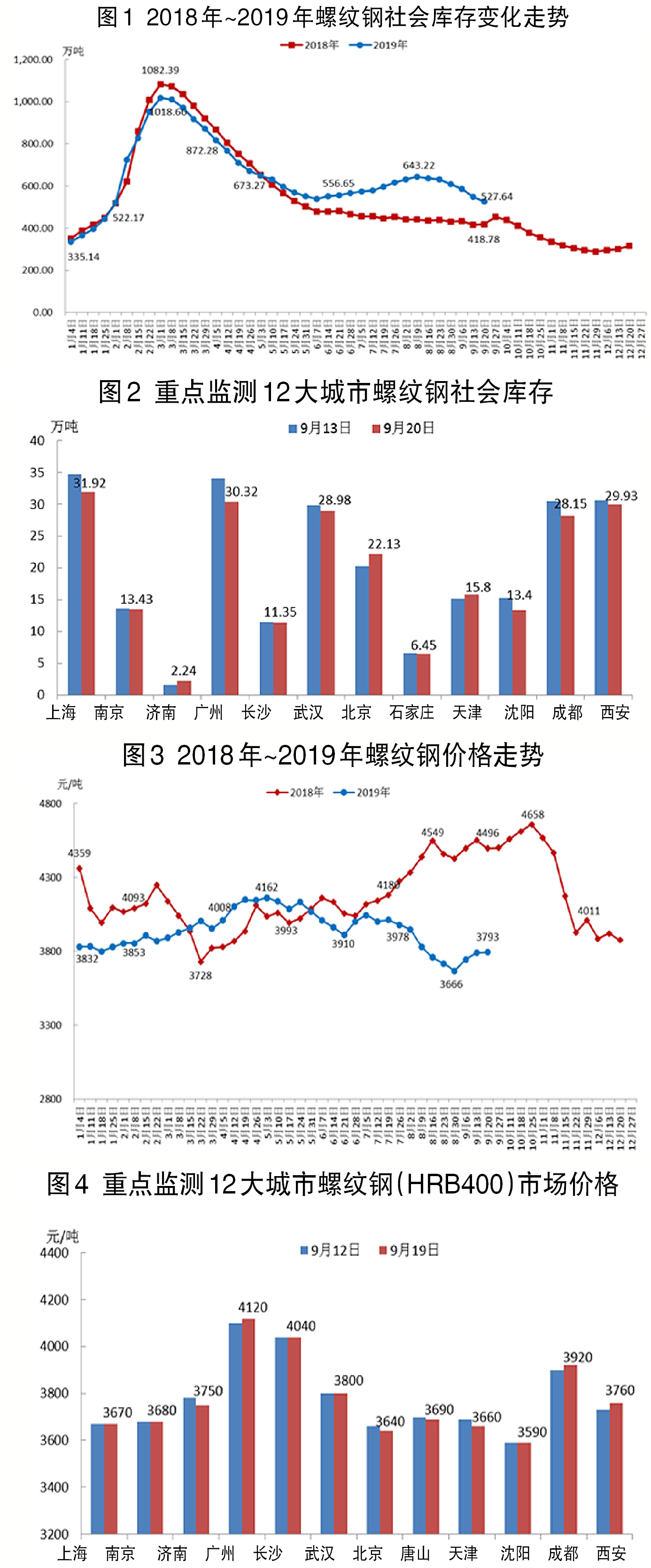9月16日~9月20日,螺紋鋼社會庫存為527.64萬噸,環比下降20.41萬噸,降幅為3.72%。重點監測的12個城市庫存升降不一,其中廣州、上海降幅較大,北京升幅較大。