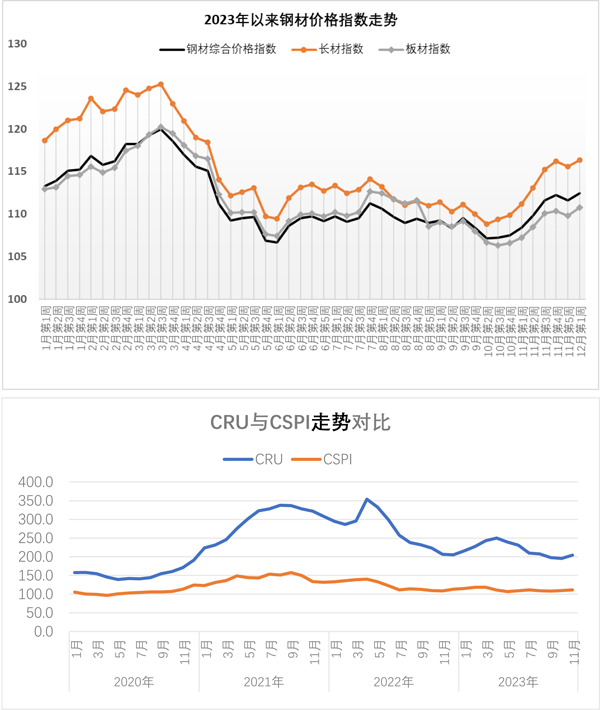 12月4日—12月8日當周,國內鋼材價格指數小幅上漲,長材價格指數有所上漲,板材價格指數小幅上漲。