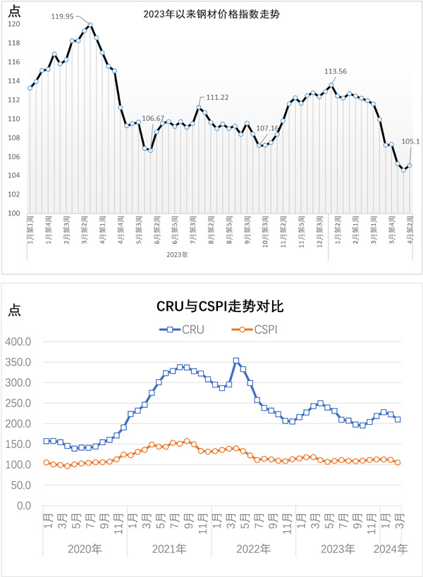4月8日—4月12日當周,國內鋼材價格指數有所回升,長材價格指數、板材價格指數均有所回升。
